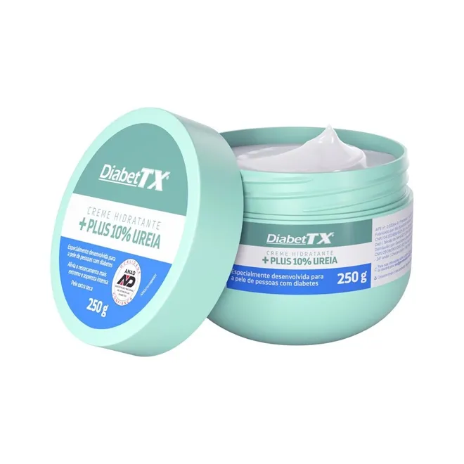 Creme Hidratante DiabetTx Plus 10% Uréia atua como uma camada protetora e hidrata profundamente as áreas ressecadas da pele. Foi testado e aprovado na pele de pessoas com diabetes.